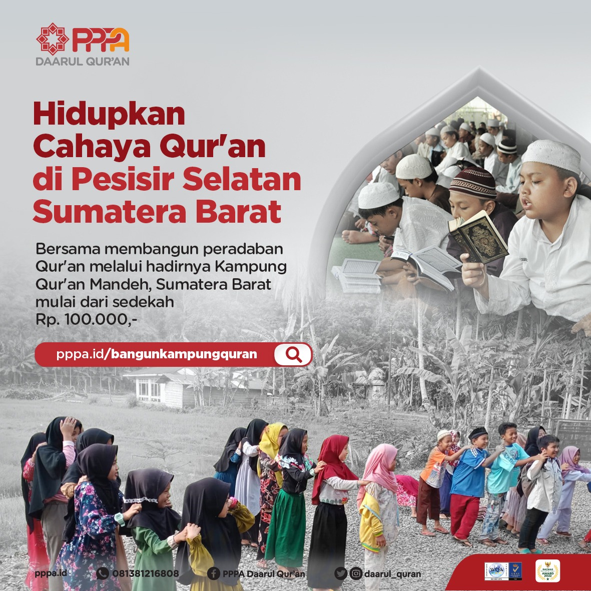 #SahabatDAQU, bersama Laznas PPPA Daarul Qur’an mari menjembatani semangat mereka dalam berjuang mewujudkan cita-cita dengan bersama membangun Kampung Qur’an Mandeh. InsyaAllah, kebaikan yang kita lakukan kelak akan menjadi saksi, bahwa merekalah yang akan mencari dan menyelamatkan kita di akhirat.