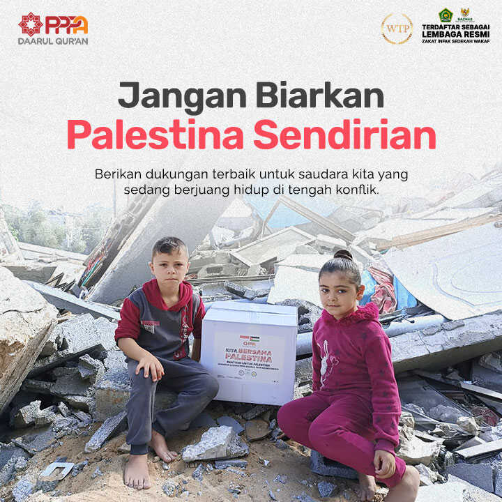 Kepedulianmu melalui pppa.id/kitabersamapalestina adalah langkah nyata untuk memperkuat Palestina, meringankan beban mereka, dan menyebarkan kehangatan di tengah kesusahan.