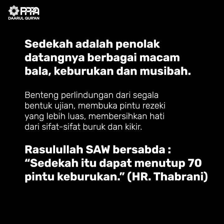 Tunaikan Sedekah Tolak Bala melalui PPPA.id. Semoga sedekah terbaik menjadi wasilah datangnya perlindungan Allah dan menjauhkan kita semua juga negeri ini dari berbagai macam keburukan, musibah, bencana serta hal-hal buruk yang menimpa, Aamiin Allahumma Aamiin.